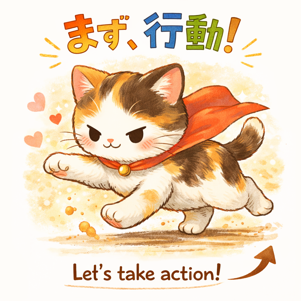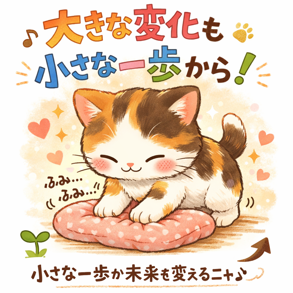 ↑小さな一歩が未来を変えるニャ!