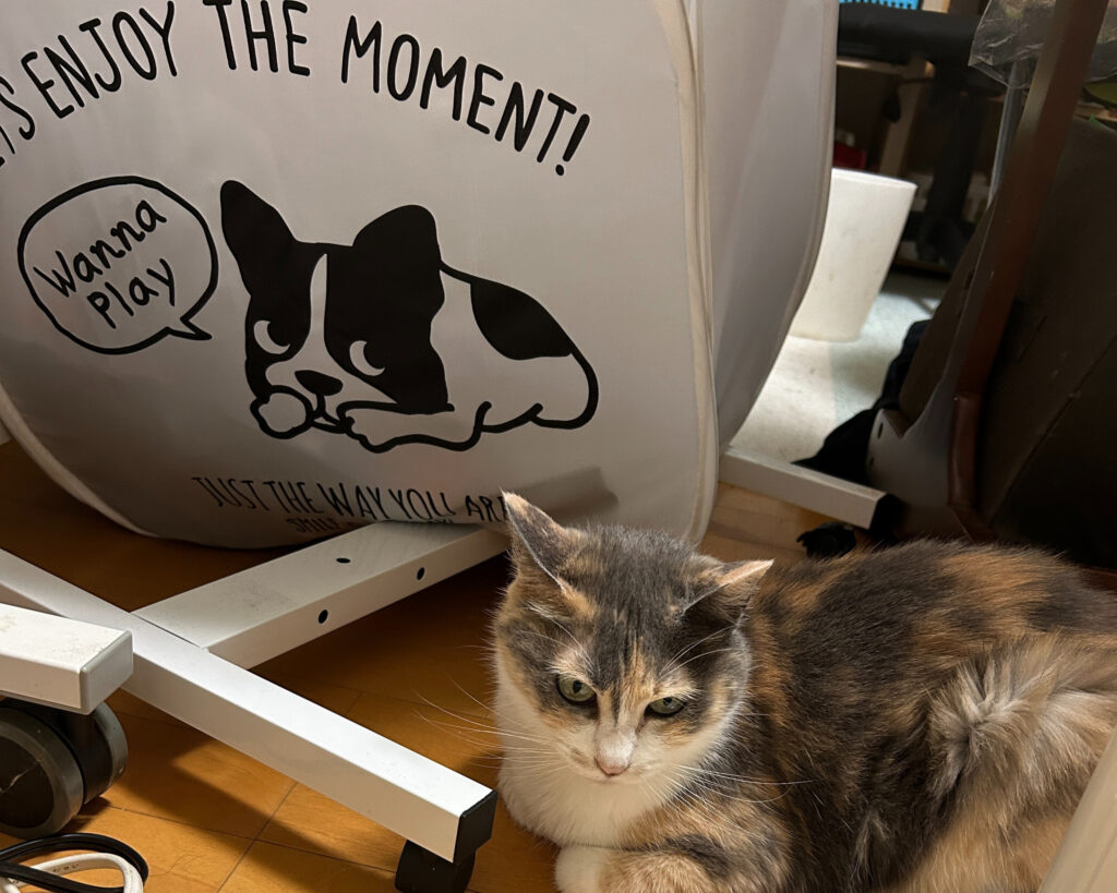 ワンルームで暮らしているのですが、片付けが苦手。ネコが遊ぶにも十分なスペースがない。(すまん)