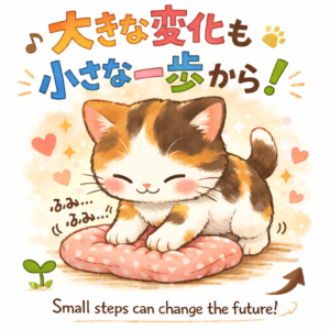 なので、習慣化でもよく言われているように、小さく始める(まずは猫パンチ程度でOK)こと、が大事なようです。(勉強する習慣を付ける場合、まずは毎日3分間は机に座るとか)