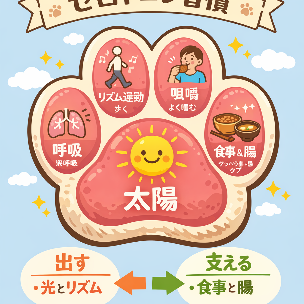 セロトニン習慣を上の4つの肉球としている。