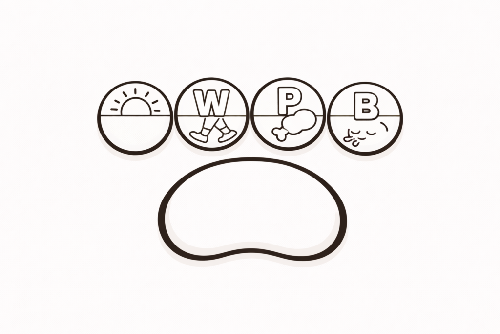 まずは、セロトニン習慣を中心に考えた4つの項目を、肉球に見立てて達成度合いを毎日管理する。